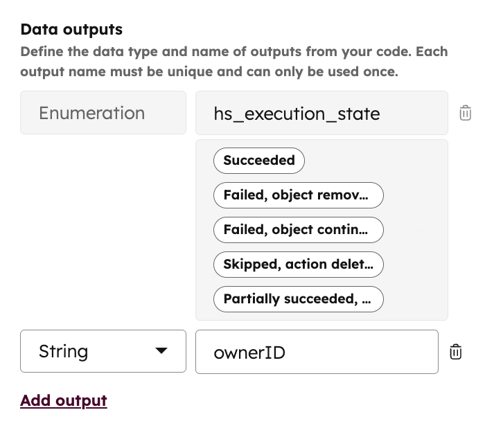 You may need to fetch object properties using the HubSpot API or to call other HubSpot API endpoints in your custom code action. Similar to other API calls, you must comply with HubSpot’s API rate limits.